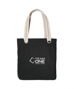 The Allie Tote is perfect for shopping, commuting or sightseeing. Contrast lining, striped handles and large metal grommets add a touch of whimsy to this casual tote. 11 Oz., cotton canvas. Interior zippered pocket. 13.25" W x 15.75" H x 3.5" D.